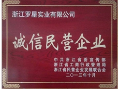公司榮獲“國家高新企業”,通過ISO9001,ISO14001,GB/T28001認證,商標“羅星牌”被評為“浙江省著名商標",公司研發中心被省科技廳認定是”省級高新技術企業研發中心”。